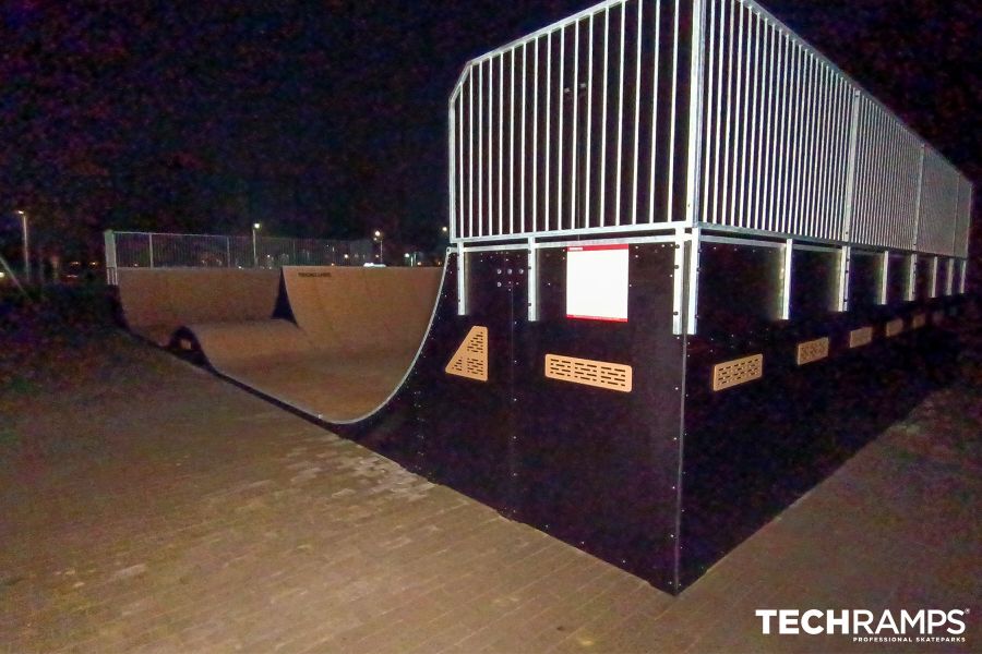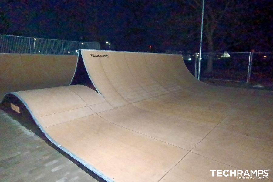I Wrocław ble det installert et modulært H180-spinrampeelement som er designet for overgangskjøring og mer avanserte triks. Elementet gir mulighet for smidige overganger og dynamiske forflytninger mellom ramper for å utvikle teknikker for skateboarding, inline-skating, BMX eller sparkesykkel. Konstruksjonen er laget av laminert kryssfiner med en RampLine-matteoverflate, noe som sikrer holdbarhet og gode kjøreegenskaper. Med sin høyde og særegne utforming er spinrampen et utfordrende treningselement for mer erfarne brukere.